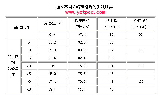 (3) 增加芳烴對油性能影響較大的是其氧化安定性變差。氧化安定性是油在長期使用中最具實際意義的性能。