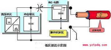 電纜的高阻故障由于故障點的電阻較大(大于10倍的電纜波阻抗),低壓脈沖在故障點沒有明顯的反射。故不能用低壓脈沖法來測量,而只能由高壓設備發(fā)出高壓信號(沖閃時發(fā)出脈沖高壓),使故障點產(chǎn)生閃絡性放電,從而發(fā)生電壓突跳。這個突跳電壓在故障點和測試端之間來回反射,根據(jù)每一次往返所經(jīng)歷的時間和電波傳播速度,同樣用上面的公式計算出故障點的距離。低壓脈沖法由儀器內部產(chǎn)生觸發(fā),而閃絡法則由外部高壓產(chǎn)生觸發(fā)。此現(xiàn)象可以在不同情況下按采樣鍵得到反映,在低壓脈沖時按采樣波形馬上顯示出來,而高壓閃絡時按采樣鍵波形并不馬上反映出來,而是等外部高壓觸發(fā)打火后才顯示出來。此種代表性儀器為本公司生產(chǎn)的:電纜故障測試儀。