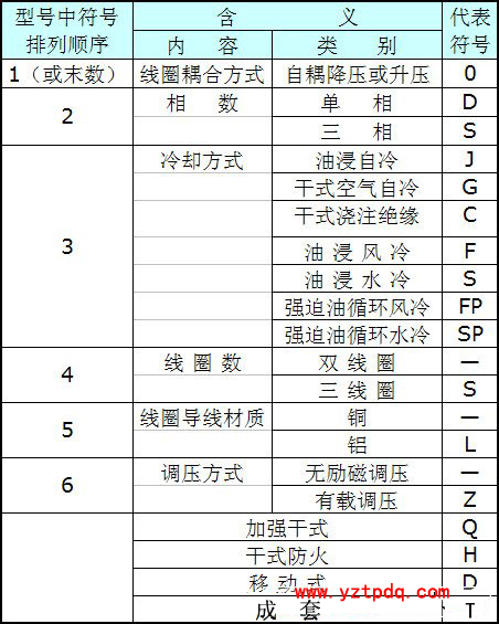 變壓器的型號(hào)和符號(hào)含義