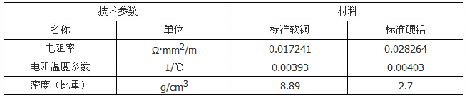 軟銅及硬鋁在20℃時的技術(shù)參數(shù)