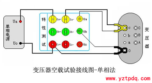 當(dāng)現(xiàn)場停電無法提供空載試驗所用的三相電源時,可采用單相法測量三相變壓器的空載損耗,測量方法如下: