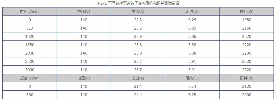 某電廠125MW雙水內(nèi)冷發(fā)電機(jī),QFS-125-2型,額定勵(lì)磁電壓為265V,額定勵(lì)磁電流為1650A,轉(zhuǎn)速為3000r/min。在交接試驗(yàn)時(shí)進(jìn)行了轉(zhuǎn)子交流阻抗和損耗的測(cè)試。測(cè)試數(shù)據(jù)見(jiàn)表1-1,將測(cè)試數(shù)據(jù)與出廠數(shù)據(jù)(見(jiàn)表1-2)作比較,得出結(jié)果是:在測(cè)量差范圍內(nèi)無(wú)顯著變化。