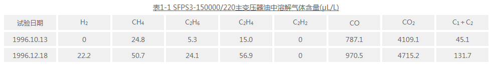 如前所述,我們在利用油中溶解氣體分析變壓器內(nèi)部故障時(shí),不僅注意油中氣體組分含量和特征氣體比值的判據(jù),而且還要綜合考慮氣體一些輔助的診斷判據(jù)。為此,我們以一臺150000/220主變壓器的鐵芯多點(diǎn)接地故障診斷為例,說明油中溶解氣體分析為依據(jù)綜合診斷故障的大致全過程。