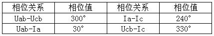 5、三相四線(三相負(fù)載平衡時(shí)的相位)表格如下: