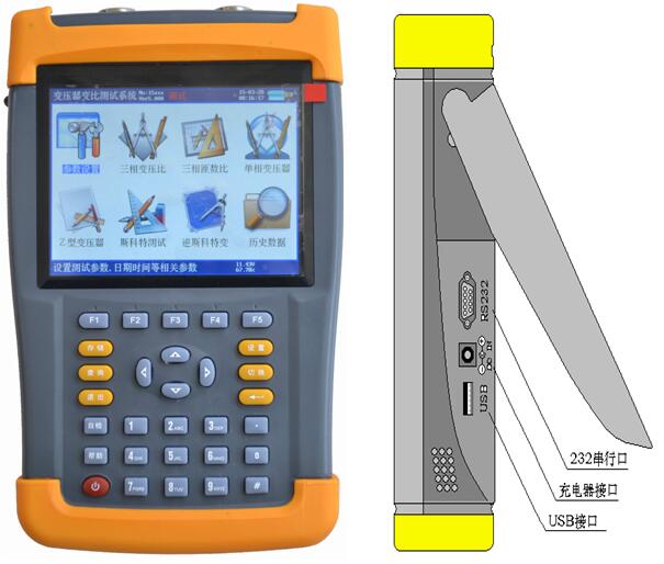 拓普品牌多功能手持式全自動(dòng)變比測(cè)試儀采用大屏幕真彩色液晶屏顯示,全中文圖形化操作界面并配有漢字提示信息、多參量顯示的液晶顯示界面,人機(jī)對(duì)話界面友好,向量圖顯示及接線判斷為檢查電路的正確性提供了可靠的依據(jù)。全觸摸式導(dǎo)電硅膠鍵盤(pán)操作方式,操作手感好,簡(jiǎn)便易學(xué)。儀器內(nèi)置大容量掉電不丟失數(shù)據(jù)存儲(chǔ)器,可將現(xiàn)場(chǎng)校驗(yàn)數(shù)據(jù)保存下來(lái),可擴(kuò)展存儲(chǔ)1000組現(xiàn)場(chǎng)校驗(yàn)結(jié)果。儀器除具有完全根據(jù)用戶的現(xiàn)場(chǎng)使用要求,操作簡(jiǎn)便,功能完備,數(shù)據(jù)穩(wěn)定可靠的特點(diǎn)外還是國(guó)內(nèi)到目前為止一款可以進(jìn)行盲測(cè)(不知道被測(cè)變壓器的任何銘牌參數(shù)的情況下準(zhǔn)確測(cè)量變比值和組號(hào),同時(shí)能準(zhǔn)確測(cè)量相角)的手持式變比測(cè)試儀;能適應(yīng)各種大中小型變壓器變比測(cè)試的需要(包括Z型變、整流變、電爐變、非整點(diǎn)的移相變、牽引變、斯科特及逆斯科特變壓器),是到目前為止國(guó)內(nèi)變比測(cè)試中技術(shù)先進(jìn),測(cè)試項(xiàng)目完善,測(cè)量參數(shù)較全面的變比測(cè)試儀。