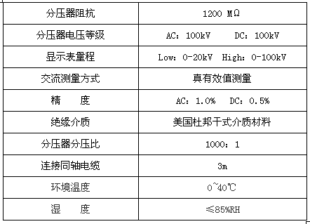 本儀器是由高壓分壓器和低壓顯示儀表構成,高壓分壓器采用國外杜邦填充材料,特種工藝灌封,結構更小,重量更輕,內(nèi)部局部放電量降到,可靠性更高。不存在漏油問題。工作時高壓分壓器和低壓儀表采用同軸電纜連接,高低壓部分距離較遠,工作安全可靠。